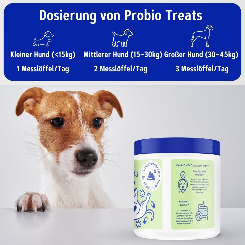Testen Sie Probio Treats 30 Tage lang, und wenn Sie oder Ihr Hund aus irgendeinem Grund nicht zufrieden sind, erstatten wir Ihnen das Geld zurück - auch wenn Ihr Hund bereits die halbe Packung gefressen hat!