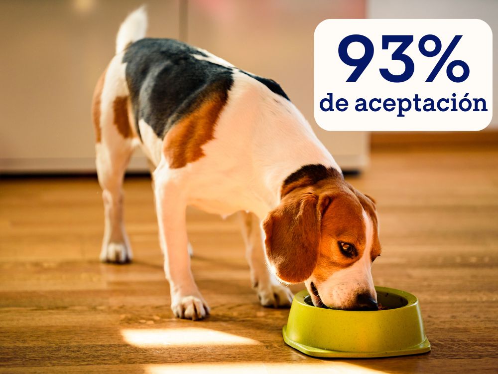 Realizamos pruebas con comida húmeda habitual. El nivel de aceptación durante 4 semanas fue del 93%.