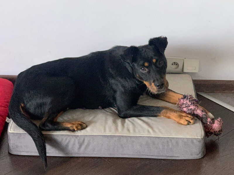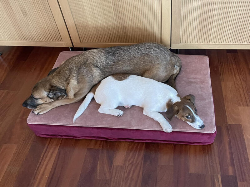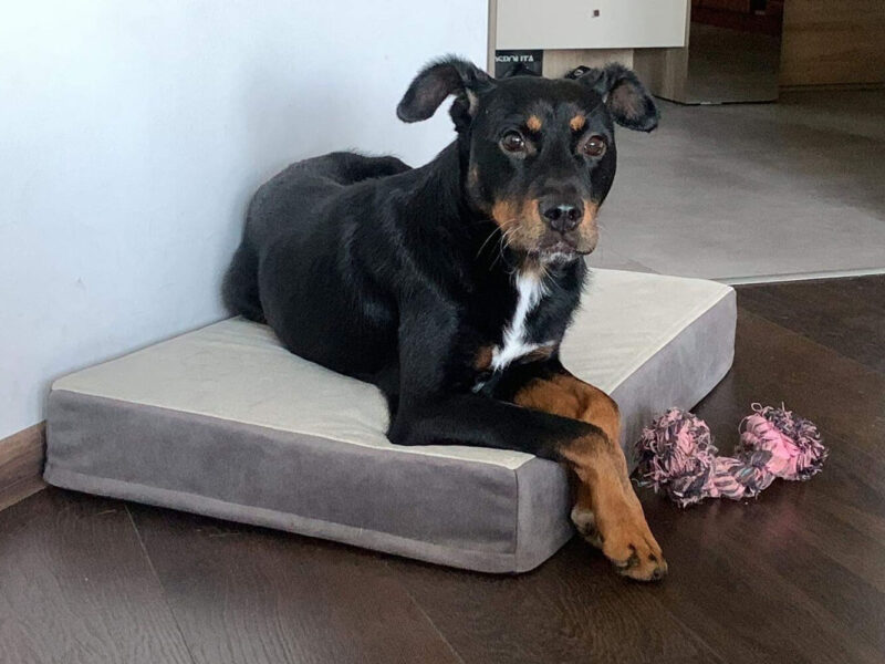 « Le matelas est excellent, même pour les jeunes chiens. Notre border collie d’un an aime beaucoup bouger. Après s’être défoulé, il a souvent les pattes sales et nous craignions que son matelas ne soit rapidement endommagé. Mais après avoir reçu notre commande, nous avons pu constater au premier coup d’œil qu’il était solide et qu’il nous servirait pendant des années. La possibilité de le laver ou de changer sa housse est vraiment un rêve pour notre petit chien 😄. Codi a mis un peu de temps à s’y habituer, mais maintenant, elle ne dort plus que sur lui 😊. Un grand avantage est aussi l’aspect visuel ! Qu’on le veuille ou non, le matelas se trouvera toujours dans une partie visible de notre pièce. Comme il est conçu de manière minimaliste et avec des couleurs discrètes, il s’intègre tout simplement parfaitement à notre décoration intérieure. »