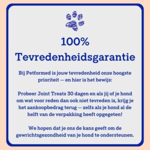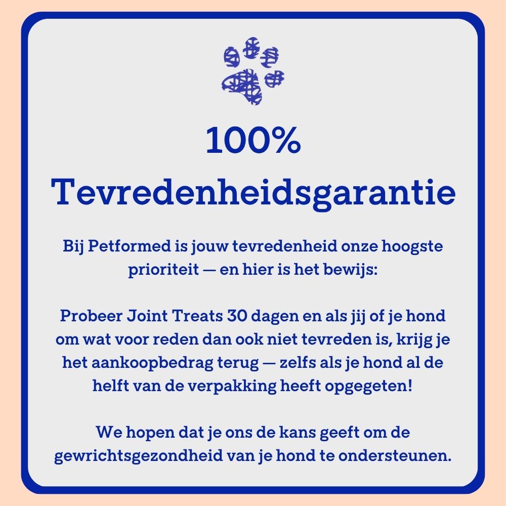 We bieden ook een 100% tevredenheidsgarantie — als er binnen 30 dagen iets niet klopt, kun je het product terugsturen en geven we je geld terug, zelfs als je hond de helft van de pot heeft opgegeten.