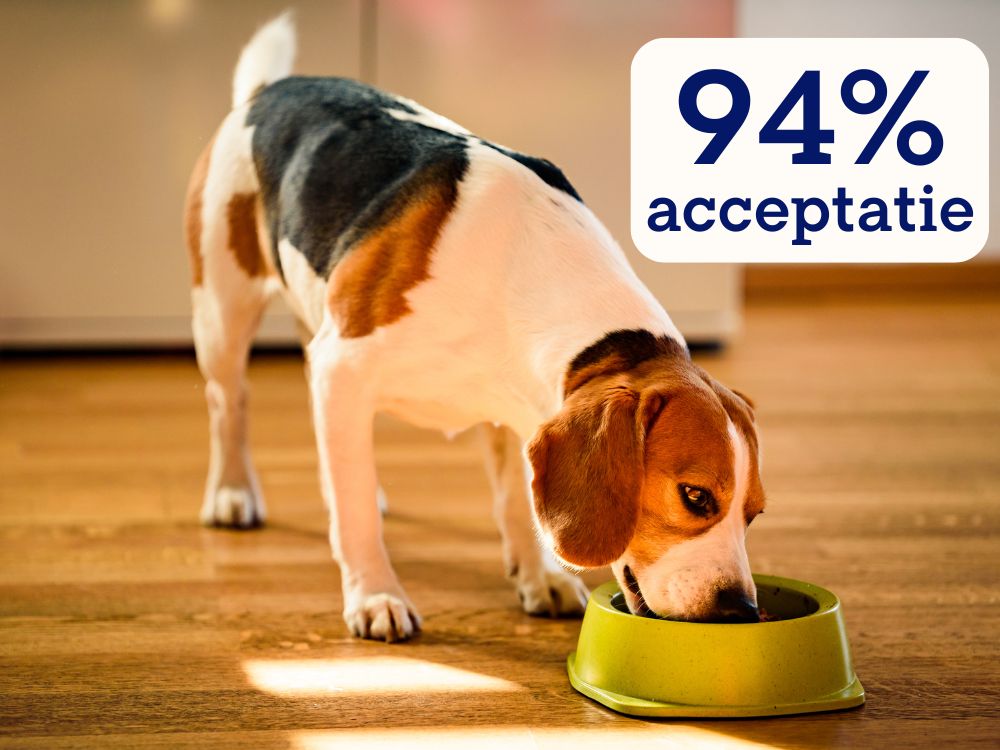 • uitzonderlijk hoge smaakacceptatie — 94% van de honden is er dol op