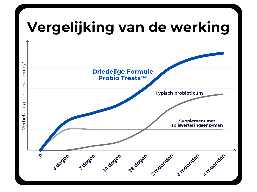 Hierdoor werken Probio Treats sneller en effectiever dan gewone probiotica die zich slechts op één aspect richten.