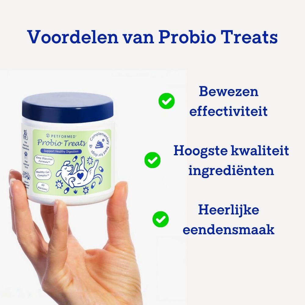 Ja, Probio Treats is volledig veilig voor honden. Het product is ontwikkeld volgens de hoogste farmaceutische standaarden en ieder ingrediënt is zorgvuldig getest op zuiverheid en veiligheid.