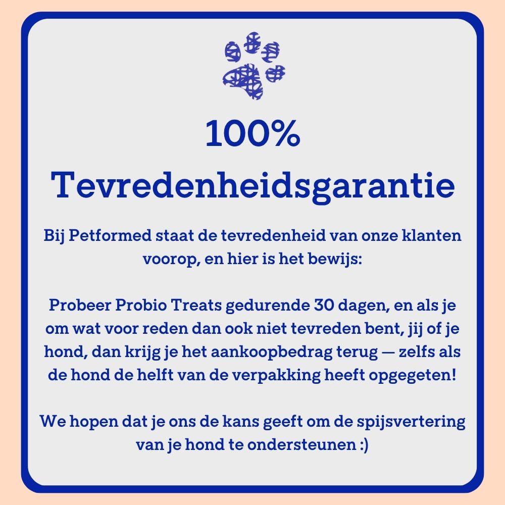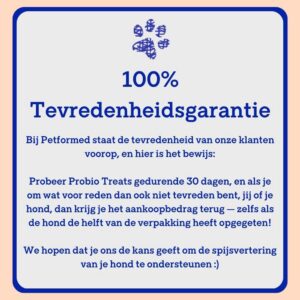 Probeer Probio Treats gedurende 30 dagen, en als je om wat voor reden dan ook niet tevreden bent, jij of je hond, dan krijg je je geld terug - zelfs als je hond al de helft van de verpakking heeft opgegeten!