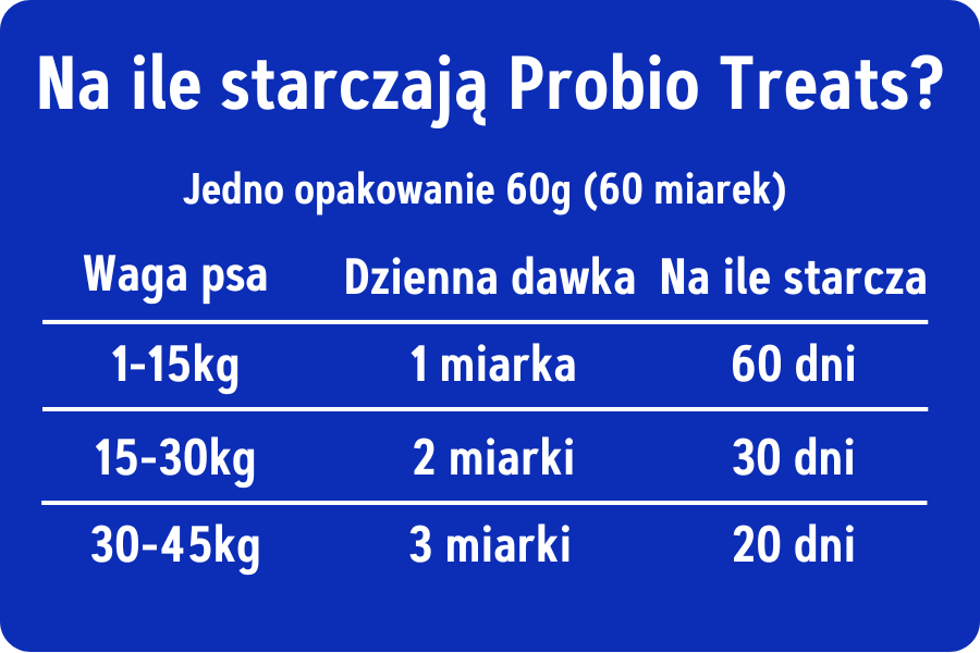 Nie ma takiej potrzeby. Probio Treats zawiera naturalne składniki, które wspierają jelita i odporność w sposób ciągły, bez ryzyka przeciążenia organizmu.