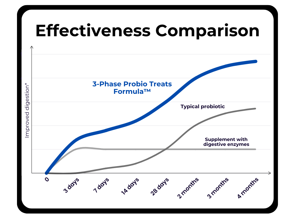 Thanks to this complete 3-phase approach, Probio Treats work faster and more effectively than single-focus probiotics.