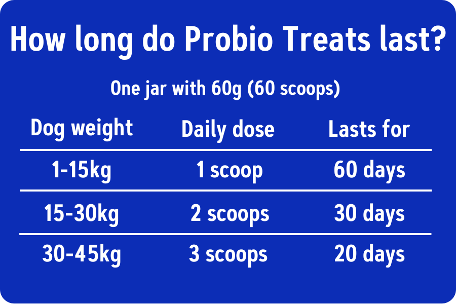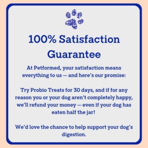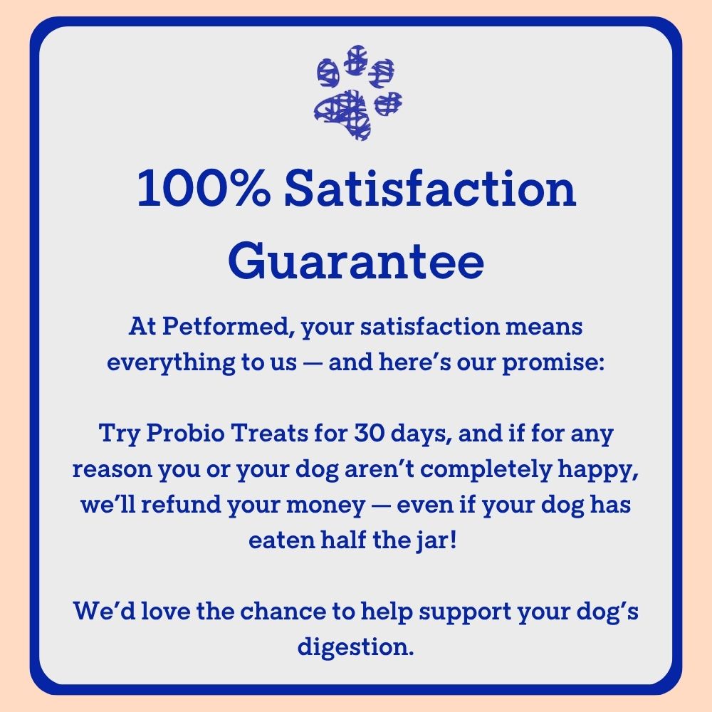 Try Probio Treats for 30 days — if you or your dog aren’t happy for any reason, we’ll refund you in full, even if half the jar is gone.