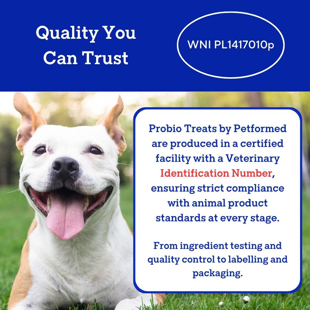 At Petformed, your dog’s wellbeing always comes first. Probio Treats are produced in the European Union under the strictest quality standards.